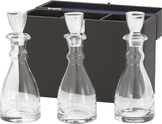 Ensure the safe and reverent transport of the Holy Oils with this highly practical 3 Piece Chrismal Set with Case. The three included bottles stand tall at 8 inches in height and offer a generous 12 oz. capacity each, providing ample oil for multiple services. The entire set is housed in a robust, custom-fitted Case, measuring 11-3/8" inches wide, 4" inches deep, and 9-1/8" inches high. This secure case guarantees the Holy Oil Bottles are protected from damage and are readily organized. This portable Chrismal Set is the ideal solution for combining sacred duty with travel durability. Our product range includes the full 3-Piece Chrismal Set with Case 9780 for $350.00, the Case only 9777 for $160.00 to safely house your existing bottles, and the bottles only 9780 if you prefer to purchase them separately.
