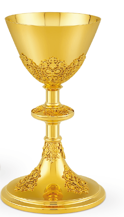 Introducing the magnificent 10-016 Chalice, a piece of liturgical artistry crafted in the revered European tradition. This stunning vessel is plated entirely in radiant 24K gold, symbolizing the highest reverence for the Precious Blood of Christ. Standing at a perfect 8” inches in height, the chalice combines liturgical dignity with exceptional balance for ease of use during the Eucharist. The cup offers a generous 10 oz. capacity, ensuring practical service even for larger congregations. It is perfectly complemented by the included 5-3/4” inch deep well paten, designed to securely hold the consecrated hosts. For your convenience and protection, the Chalice and Paten are shipped with a protective carrying Case Included. The Chalice and Paten are sold separately from the matching Ciborium. The matching Ciborium (10-216) stands 12” tall, holds 250 hosts, and is also available to complete your sacred set.   10-216