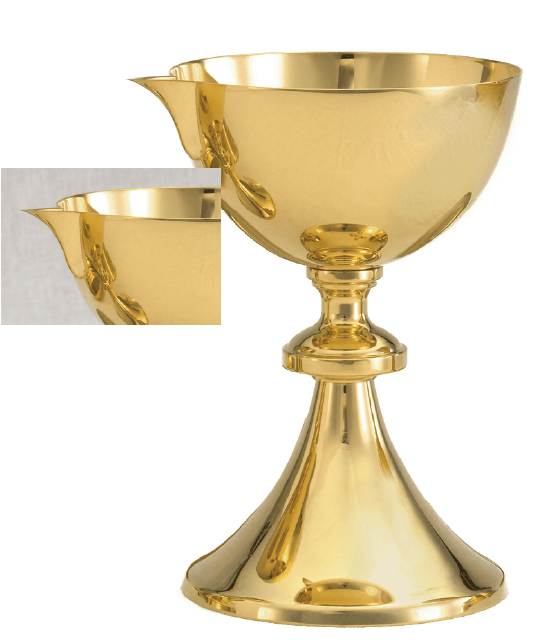 The A-753G Chalice with Pouring Spout is a beautifully made and specialized liturgical vessel designed for the dignified transfer of the Precious Blood into other containers. The entire piece is richly plated in brilliant 24K gold and features a stunning High Polish finish, ensuring a luminous presence on the altar. This chalice is engineered with a convenient pouring spout on the rim, allowing for controlled and precise distribution. Standing at 7-3/8 inches in Height, it holds a generous 12 oz. (ounce) liquid capacity, combining functionality with traditional elegance.