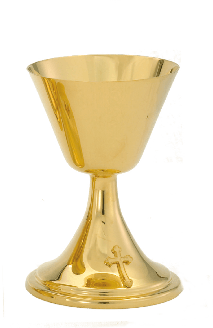 gold cross accent with 6 1/8” Height, 8 Oz capacity, 5 ½” scale paten included. This is a superior piece of craftsmanship, designed to bring unmatched visual reverence to your service.