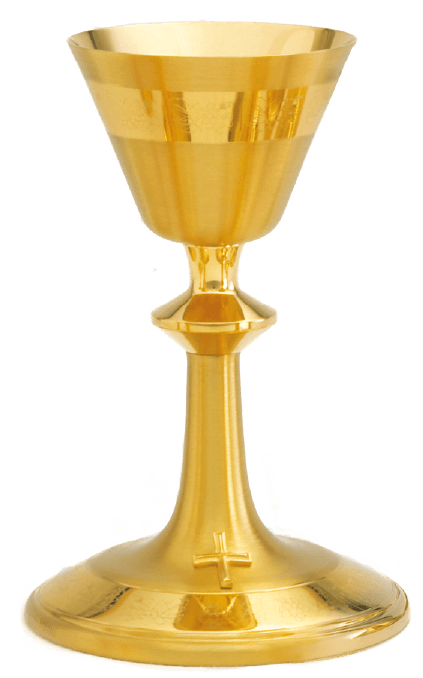 This elegantly crafted Chalice offers a sophisticated and symbolic presentation for the sacred liturgy. The vessel is richly plated in brilliant 24K gold and features an elegant Satin finish, providing a soft, non-reflective beauty. The design is traditionally accented with a detailed grape leaf band—a classic symbol of the Eucharist—and a simple cross accent. Standing at a graceful 8-1/8 inches in Height, the chalice holds a reverent 8 oz. (ounce) liquid capacity. This set includes a standard 5-1/2 inch scale paten. The Retail Price for this Chalice Set is $1250.00. For a complete ensemble, the Matching Ciborium B-7335G is available, featuring the same elegant design, standing at a substantial 10-1/4 inches in Height with a secure capacity for 175 Hosts.