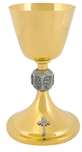 This elegantly crafted High Polish Chalice is a stunning two-tone piece, completely plated in brilliant 24K gold for enduring radiance and devotion.
