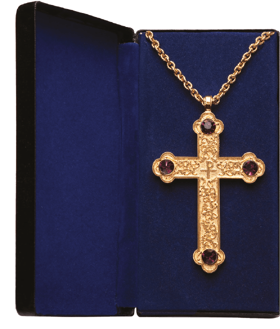 Presenting a stunning symbol of faith and dignity, this Pectoral Cross is the epitome of fine religious artistry. Lavishly plated in 24-karat gold, the cross