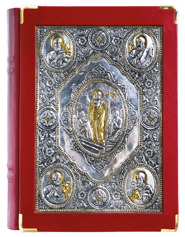 icon depicting The Resurrection of Christ alongside the Four Evangelists. Complementing this, the back panel showcases a deeply moving silver-plated icon