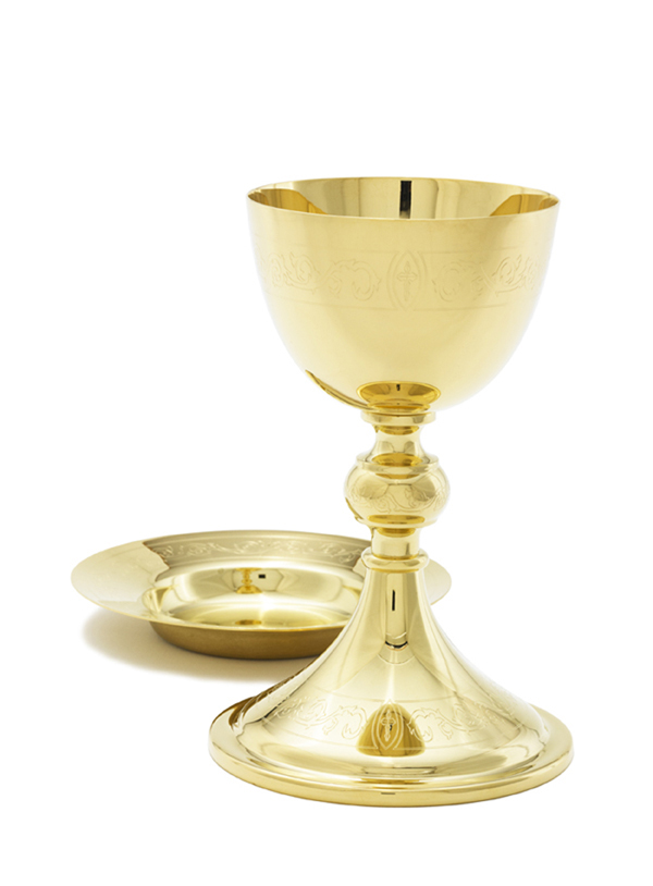 Beautifully crafted High Polish Chalice plated in 24K gold with engraved design.